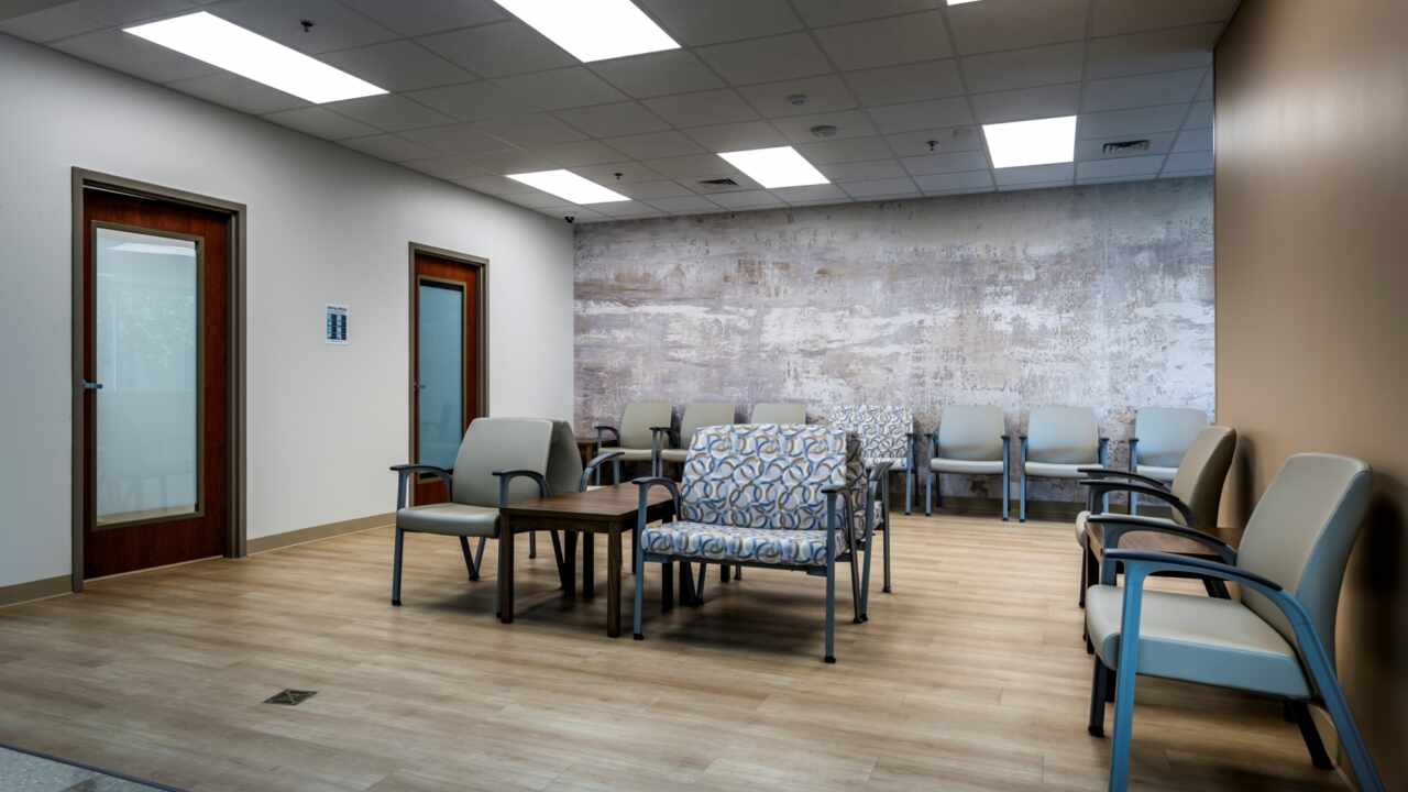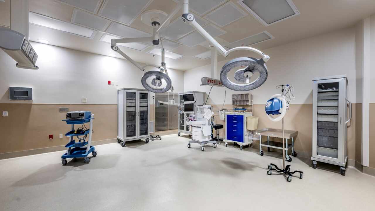 In Phase 1, the focus is on enhancing the existing reception area to create a more open, inviting, and hospitable main entry for visitors. Additionally, segments of the adjacent inpatient physical therapy department were revamped to accommodate two pre-op admitting offices and waiting areas for outpatient services. The existing hospital was expanded, including the construction of two new operating rooms, one endoscopy room, and six new PACU patient bays. Concurrently, new SPD and ancillary support areas were incorporated as needed.