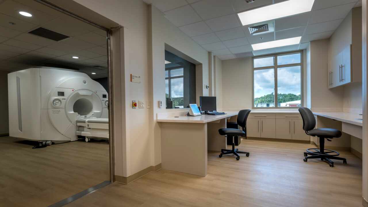 Moving on to Phase 2, an adjacent addition includes a new MRI suite, complete with a control room, patient vestibule, and equipment rooms. Furthermore, a covered patient discharge canopy was installed between the MRI and PACU additions. Simultaneously, a new generator will be provided at the Bayou Bend Wellness Center. This generator will be connected to both the Wellness Center and the nearby BBHS hospital facility, enhancing the overall infrastructure and ensuring operational continuity.