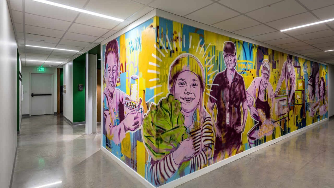 The primary phase of the project includes the addition of a two-story structure inside of the existing warehouse to be utilized for office space, and the addition of a new entrance and exterior space. Also included is an interior parking addition, full service commercial kitchen addition, and office space renovation.